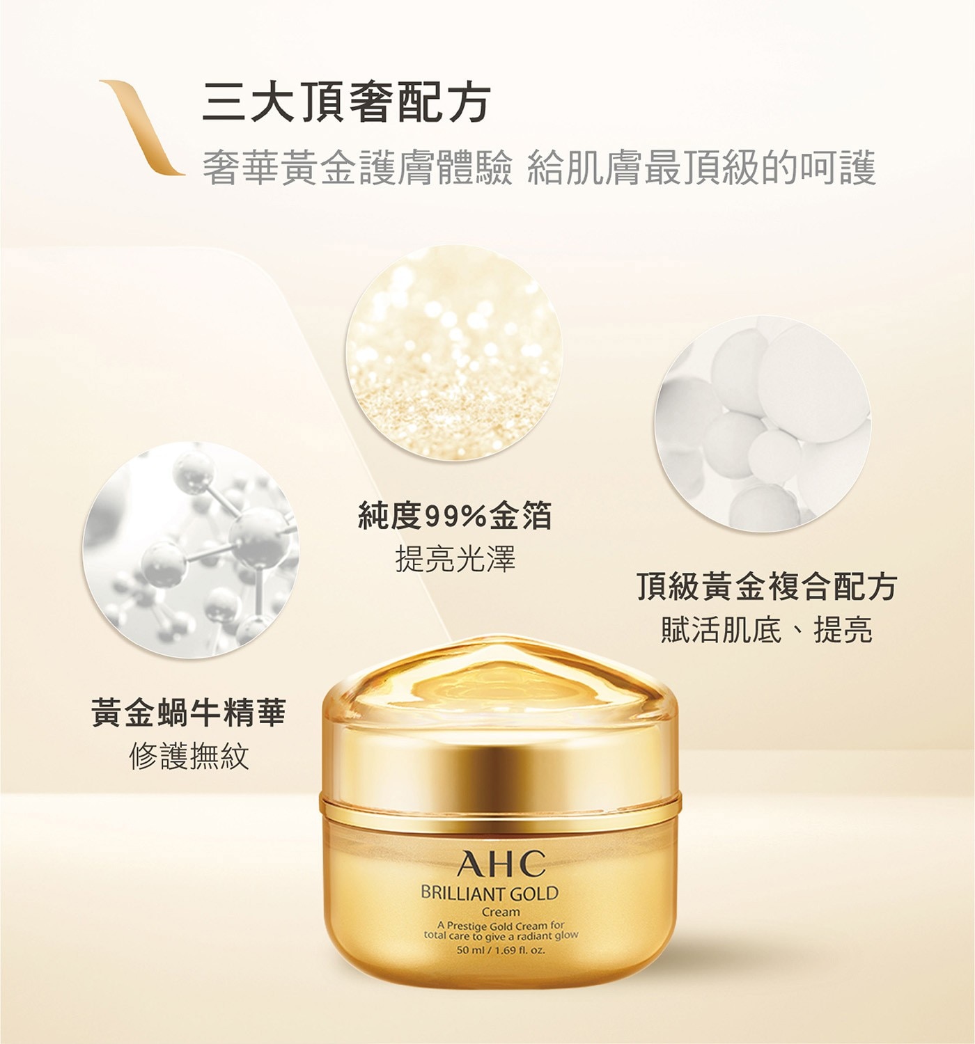 現在發現有一款AHC,好生火啊!AHC 黃金逆時煥顏活膚霜 50毫升
